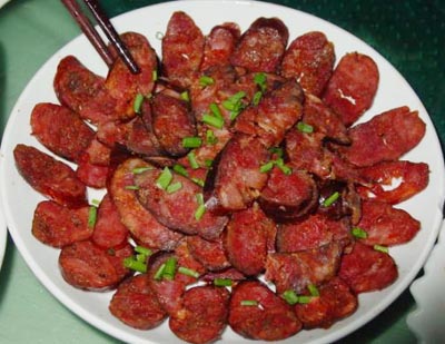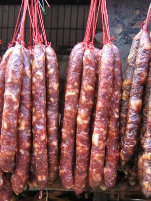 张家界的香肠是一种非常美味的食品,在张家界,当地人每天过年前一个月内就会腌制腊肉、香肠、猪脑壳肉等,在正月里,亲戚在拜年的时候,它们是必不可少的餐桌上食品。